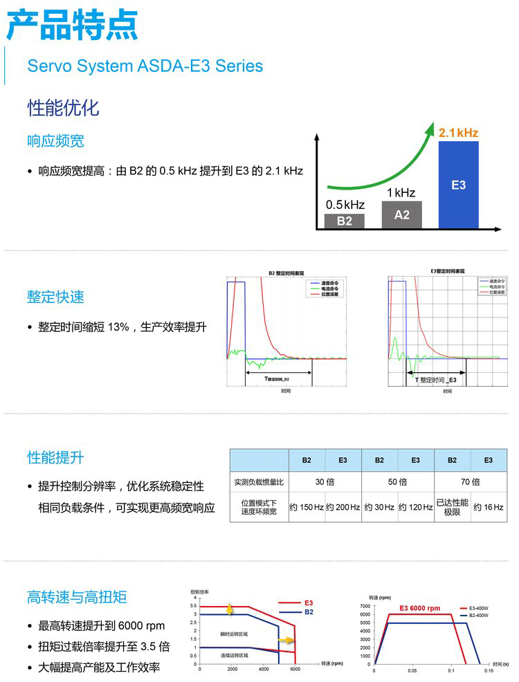 响应带宽提高:提升控制分辨率,优化系统稳定性 相同负载条件,可实现更高带宽响应,由 B2 的 0.5 kHz 提升到 2.5 kHz